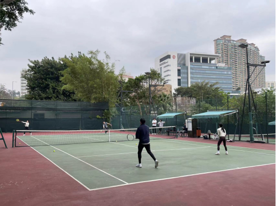 下午时分,香港三军会的网球场热闹非凡,上财香港校友会在这里成功举办了校友网球活动。校友们热情高涨,以球会友,现场洋溢着浓厚的友谊与运动氛围。