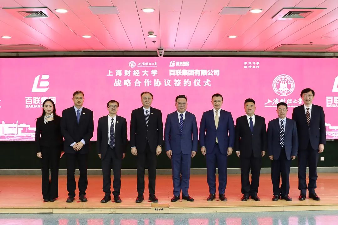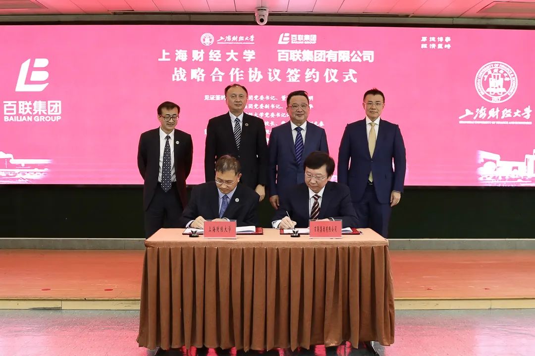 3月27日上午,我校与百联集团有限公司在学校行政楼一楼报告厅签署战略合作协议。校党委书记许涛与百联集团党委书记、董事长叶永明出席并致辞。校长、党委副书记刘元春,党委常委、副校长李增泉与百联集团党委副书记、总裁濮韶华,副总裁李海超,财务总监杨阿国,首席投资与金融官庄启飞出席活动。校长助理刘莉亚主持活动。