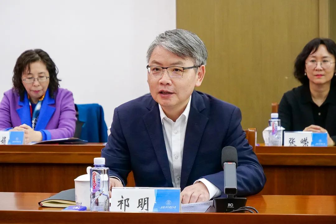 祁明书记介绍了上海对外经贸大学的发展情况,表示上海财经大学与上海对外经贸大学战略签约并推进务实合作,正逢其时,大有可为。他说,在新征程上,上经贸大热切期待上财能够“手牵手”,双方携手共进,在党建联建、学科共建、科研合作、拔尖创新人才培养和国际化办学资源共享等领域,进行全方位的合作,在服务推动上海“五个中心”建设、特别是国际金融中心和国际贸易中心建设进程中,构建“一财一贸”优势互补、相互赋能、高质量发展新局面。