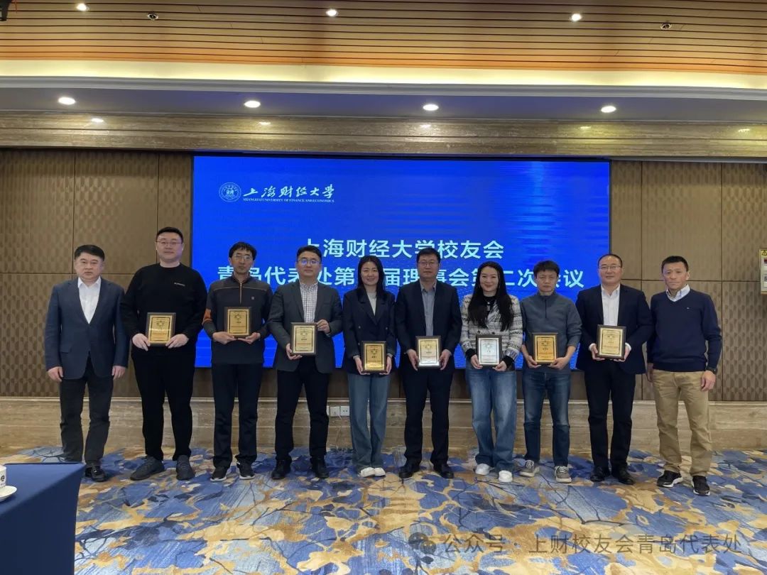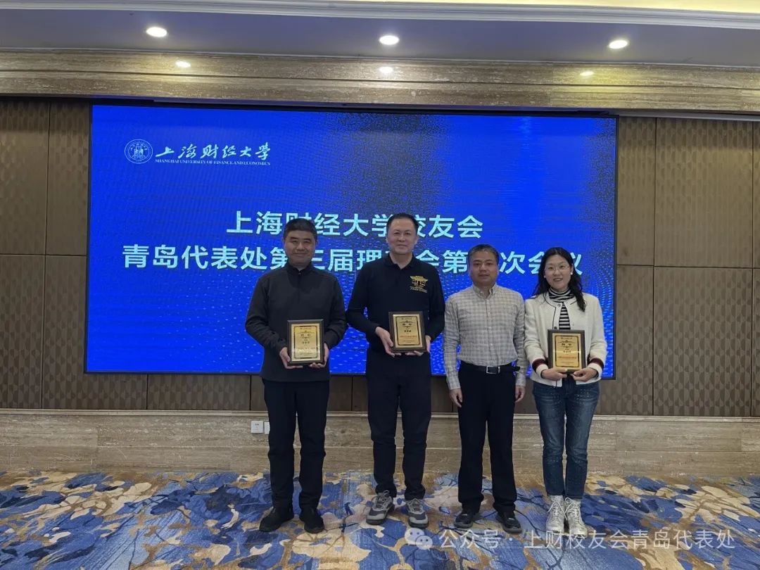 本次会议共有六大议题。首先,向上财校友会青岛代表处第三届理事会理事颁发聘书。