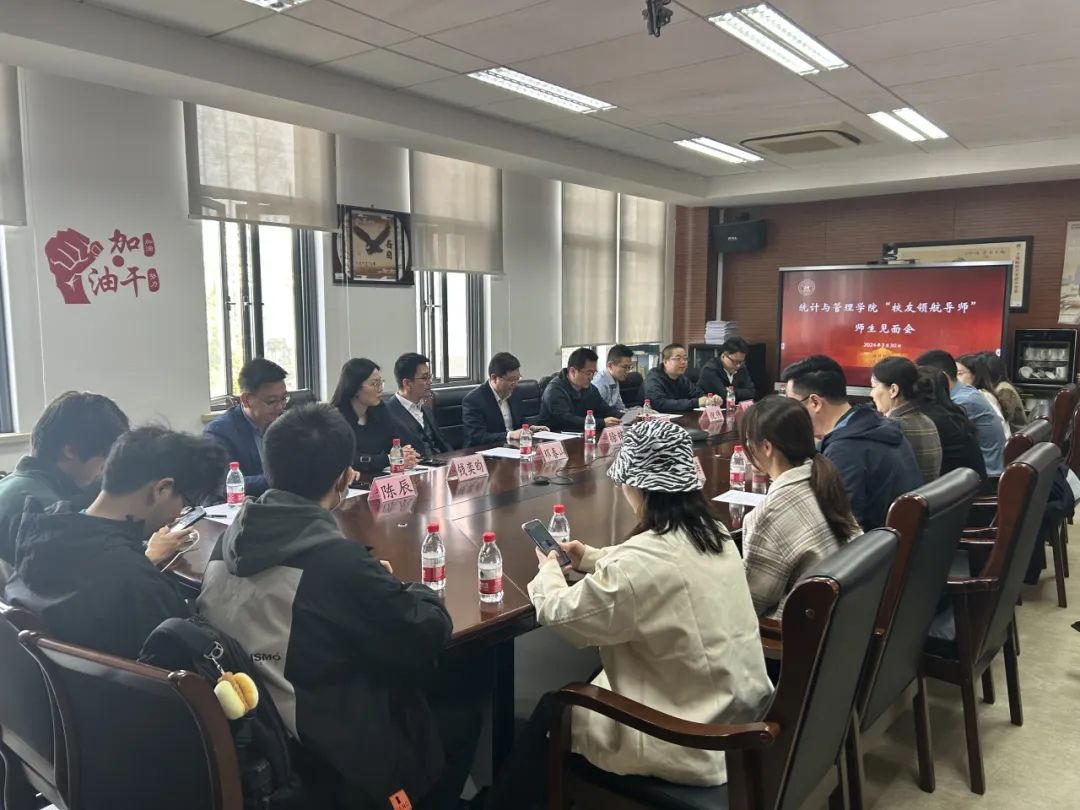 为积极凝聚校友力量探索协同育人机制,搭建校友与学生互动交流平台,持续推进校友领航导师项目,2024年3月30日上午,统计与管理学院2024年度“校友领航导师”师生见面会在学院1316会议室顺利举行。统计与管理学院党委书记杨晖、党委副书记庄美、党委组织员王钰钦、学院校友分会执行秘书长管洲海和来自不同行业领域的校友领航导师代表,以及学院二十多名本硕在校学生参加活动。