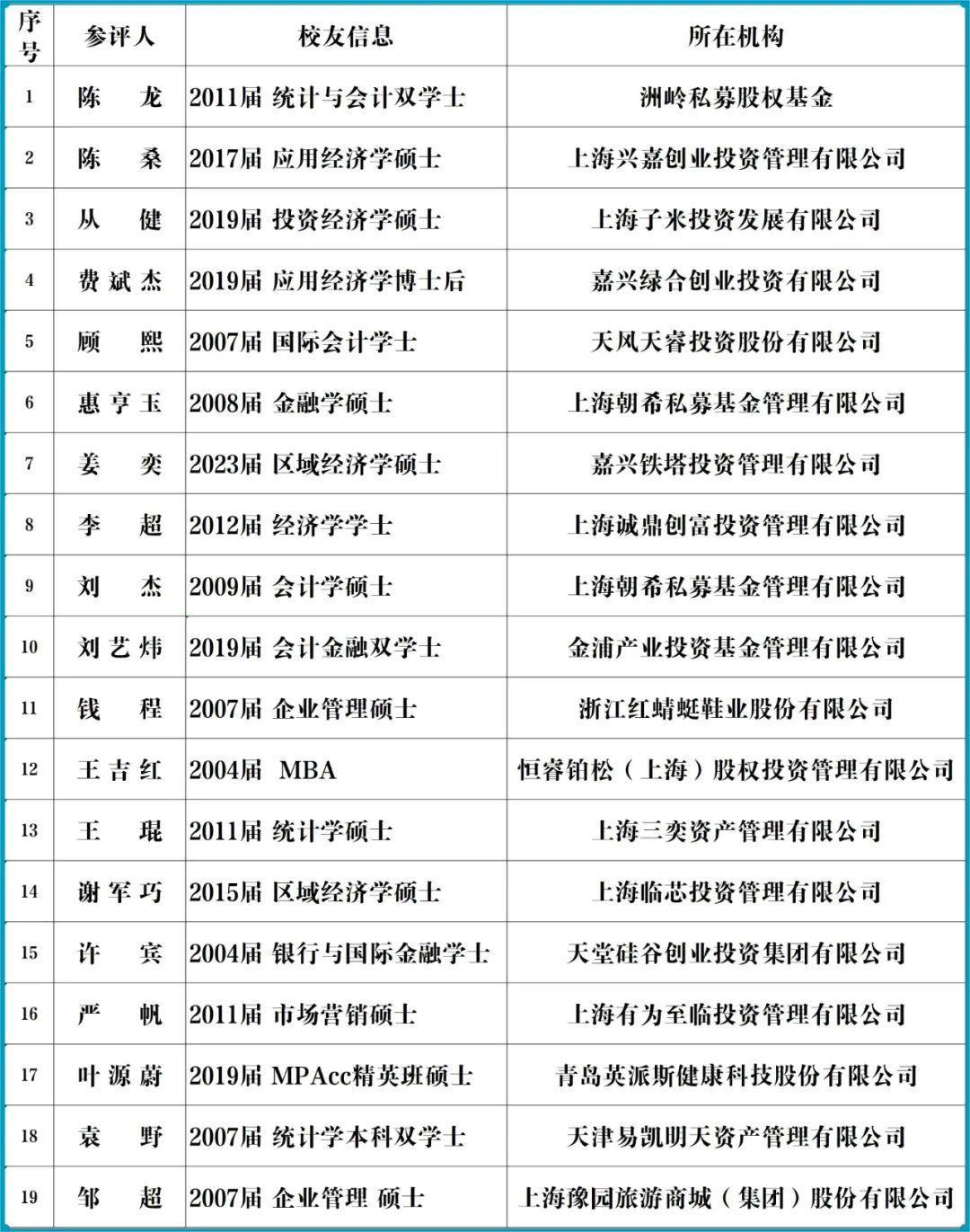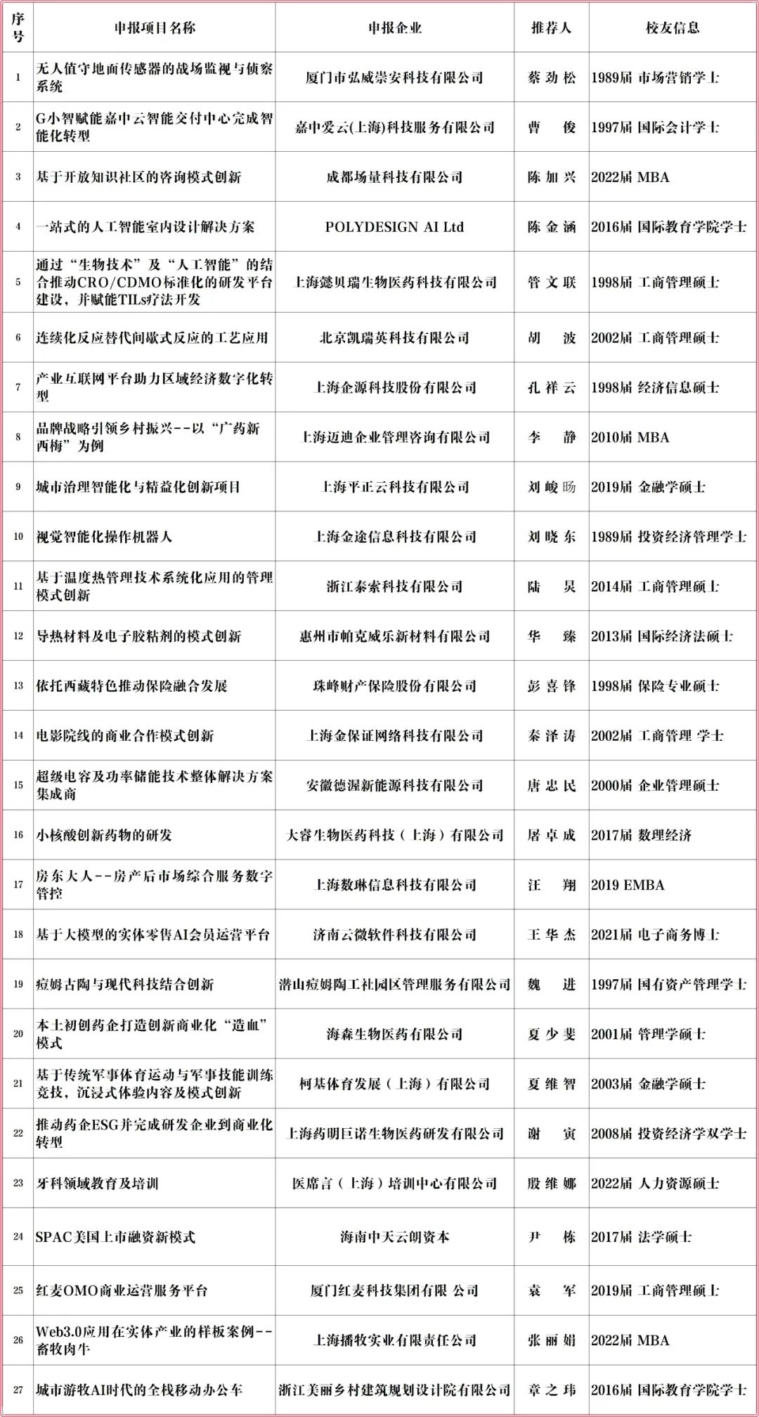 通过组委会实地走访、背景调查等初审,并报送各奖项的专家评委会评审,现有27个实践案例、19位投资人、20位专业人入围“创新创业最佳实践”、“优秀投资人”、“卓越专业人”各奖项获奖名单,现予以公示。