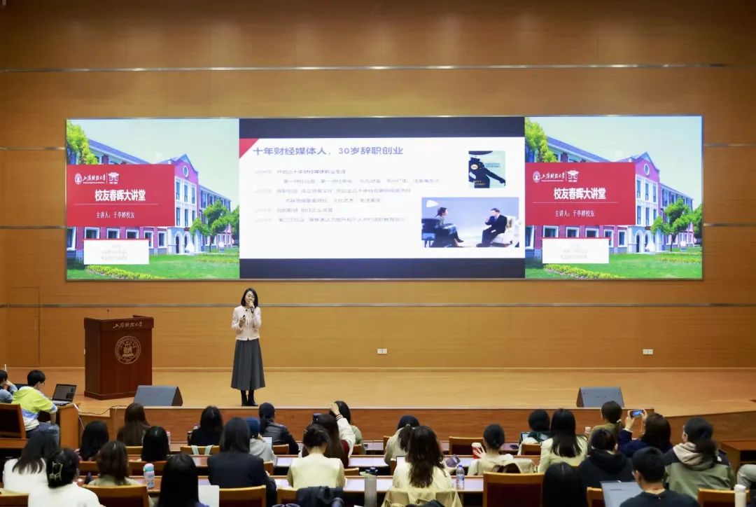 4月13日下午,本学期第一场春晖大讲堂和校友学堂在上海财经大学创业中心一楼报告厅举行,本次活动由上海财经大学校友会和春晖校友学生助理团组织。讲座邀请到了骑翼文化创始人、上财2002级会计学院校友于亭婷,围绕“从今天起,将个人IP当作长期资产来投资”的主题进行分享,讲座吸引了200余名在校生与校友到场聆听。