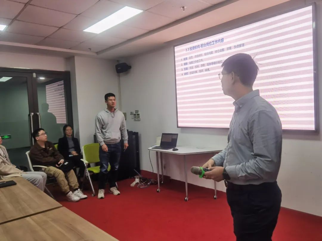 第三部分支琪凯校友介绍了市场参与者,包括了监管机构、自律协会与服务机构和投资者各机构各岗位的工作内容。然后他介绍了前台和中后台岗位的不同职能和职业发展渠道,为同学们拓展职业发展的思路。