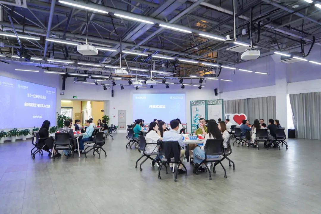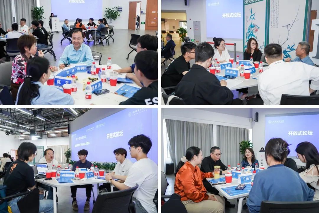 此次论坛现场共设置了7张交流桌,每张交流桌上坐有一名校友嘉宾、两名学院老师以及3-4名学生,校友嘉宾与学院师生依次轮换交流。大家畅所欲言,现场气氛热烈。