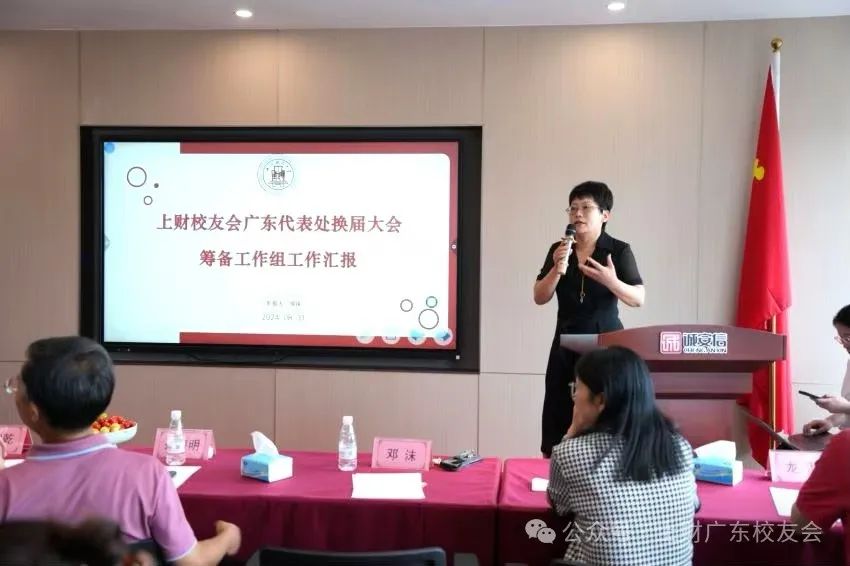 活动的另一个核心环节之一,换届大会筹备工作组代表邓沫学姐以饱满的热情和详尽的准备,向全体校友及嘉宾汇报了换届筹备工作的最新进展。邓沫学姐首先回顾了换届筹备工作的启动背景与意义,强调了此次换届对于校友会传承与发展的关键作用。随后,邓沫学姐详细介绍了校友情况调查、兄弟院校交流、兴趣组织筹备和理事人选筛选等换届筹备工作。最后,介绍了即将开展的一系列精彩活动计划,总结凝练、思路无限。她精彩的汇报内容和群策群力的工作思路赢得了现场阵阵掌声。