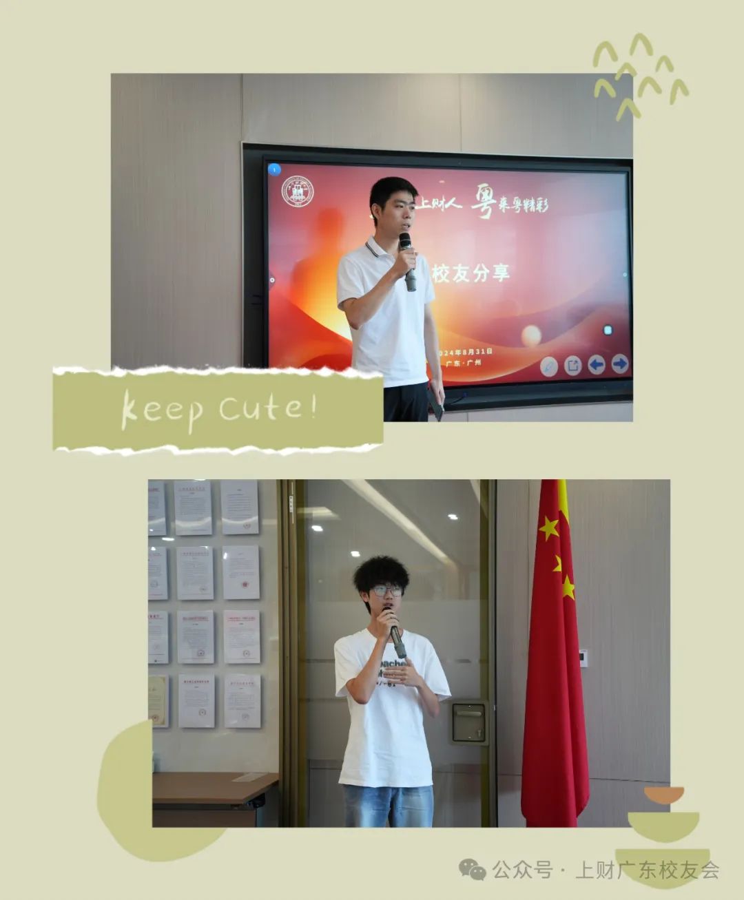 即将入学的陈政瀚同学作为新生代表,表达了对上财的向往与期待,刚毕业的刘沛分享了参加活动的感受,并表示将积极参与校友会活动,为校友会贡献自己的力量。唐家乾老师代表学校向新生颁发了具有上财特色的纪念品,并对他们未来的学习生活致以美好的祝福。