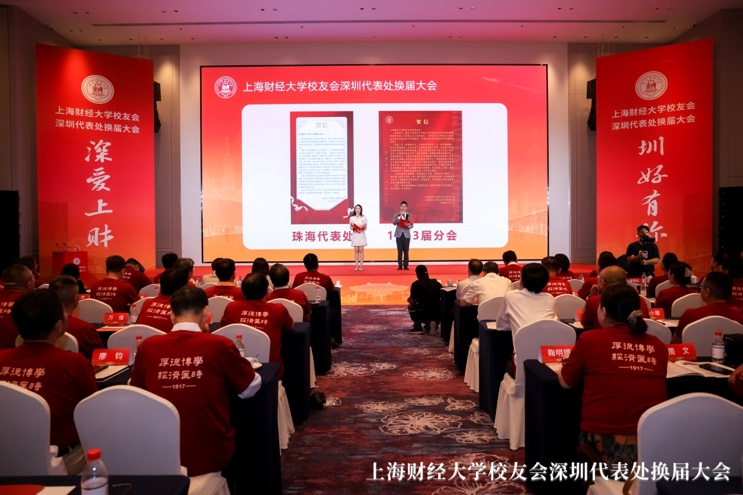 校友总会秘书长陈红梅宣读了《关于同意上海财经大学校友会深圳代表处换届的批复》,对深圳代表处多年来取得的成绩和此次换届筹备工作给予了充分肯定。