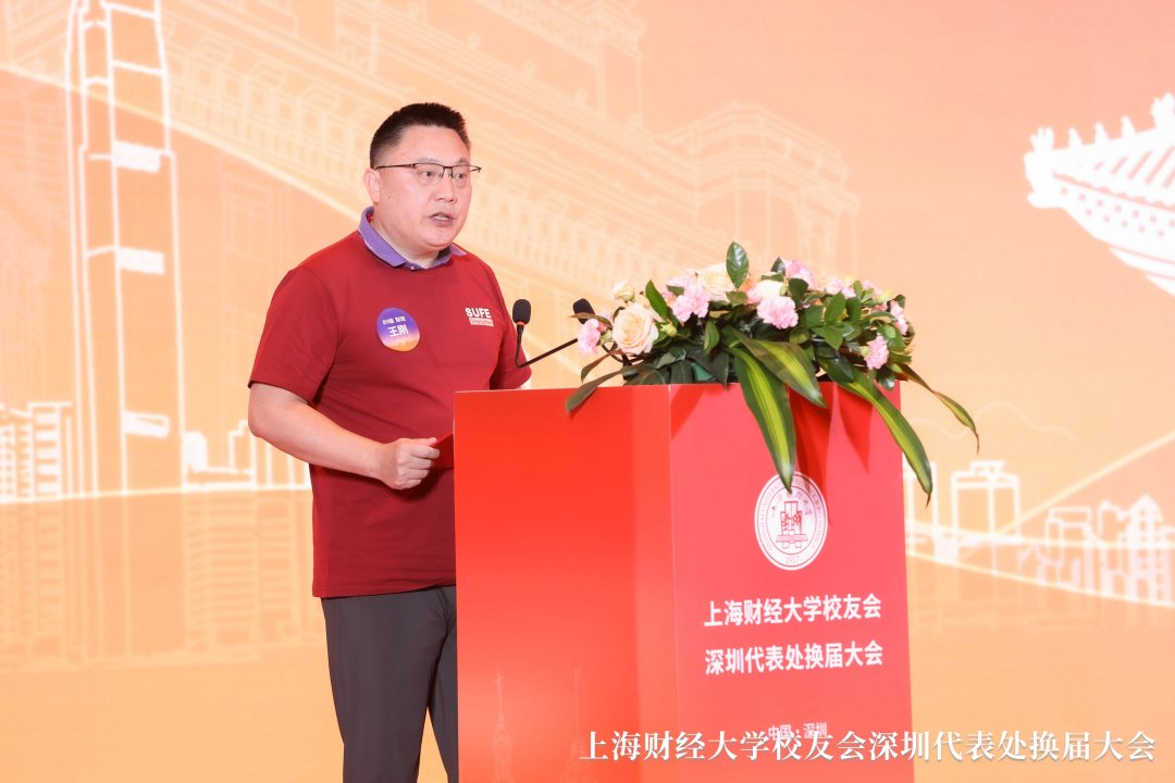 接下来,由王刚校友代表深圳代表处换届工作领导小组,汇报了换届大会筹备情况,介绍了深圳代表处新一届理事会的构成及名单产生方式,并表示本次换届工作将为上海财经大学校友会深圳代表处的发展带来新的机遇和挑战。