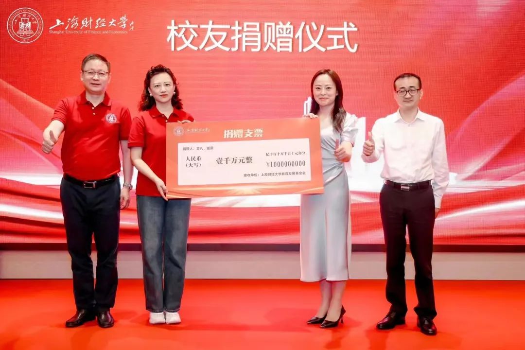 珠海代表处荣誉会长董凡校友及其夫人1988级保险专业雷雯校友校董,多年来始终关心支持母校的建设。在珠海代表处成立之际,两位伉俪校友共同向母校捐赠1000万元,再次以实际行动支持母校的教育事业发展。上海财经大学教育发展基金会副理事长刘莉亚副校长与雷雯校友校董进行捐赠签约,刘元春校长和董凡校友共同见证。
