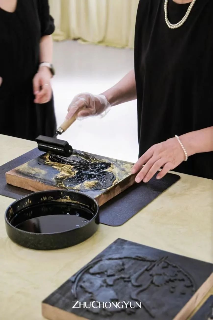 紧接着,活动邀请嘉宾们体验东方木刻版拓印沙龙,在这里,嘉宾们仿佛穿越回千年前的古老时光,亲身体验到了东方非遗文化的博大精深。