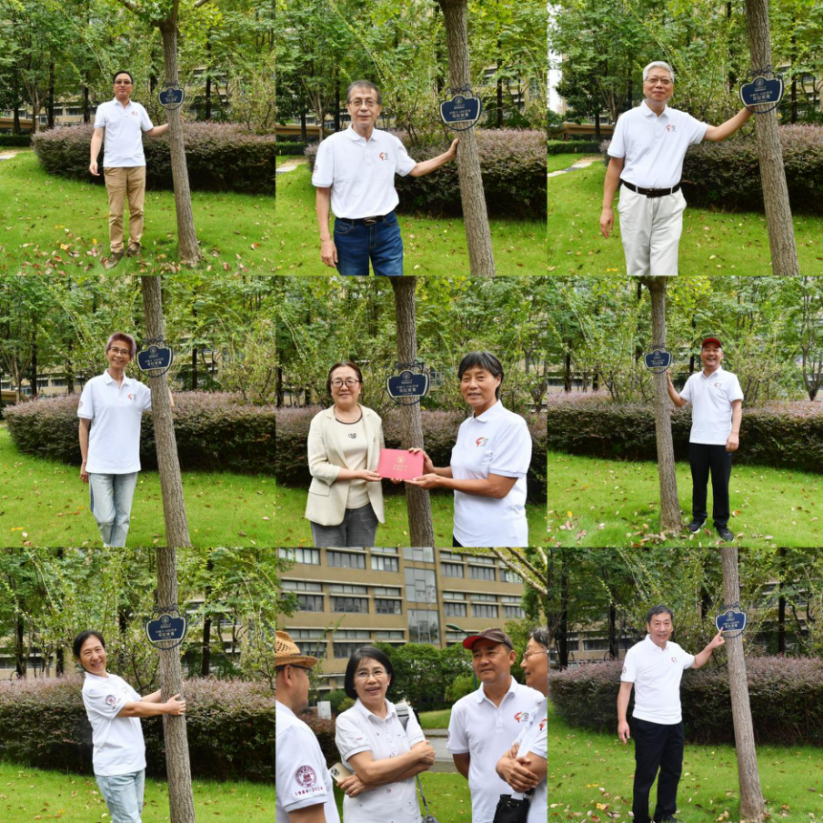 座谈会结束后,校友们移步至学院楼前,开展“1984届校友认捐树木揭牌仪式”。杨晖书记代表学院为1984届校友颁发捐赠证书。茂盛秀美的银杏树上悬挂着专属铭牌,这将成为1984届统计校友们与母校维系情感、升华情谊的纽带,也在提醒着每一个统计人,始终和树木一样向阳而生、倔强成长,永远风华正茂!校友们聚集在捐赠树木旁,共同留下了这一难忘时刻的珍贵合影。