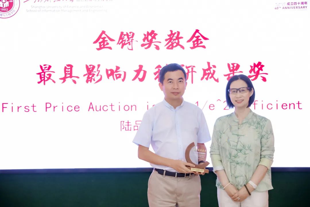 陆品燕老师首先分享了获得“最具影响力科研成果奖”的《第一价格拍卖效率问题》成果内容,此项成果证明了在第一价格拍卖的任意实例中,拍卖分配所得效率至少是最优分配所得效率的86.47%,对第一价格拍卖效率进行了准确刻画,解决了拍卖理论与计算经济学中一个长期悬而未决的学术难题——第一价格拍卖的效率问题。被收录于理论计算机顶级期刊JACM 2022。