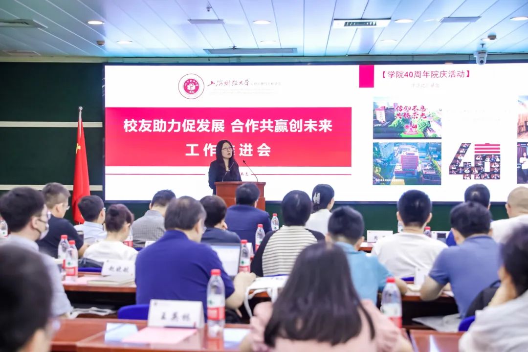 近日,上海财经大学信息管理与工程学院“校友助力促发展,合作共赢创未来”工作推进会在学校行政楼一楼报告厅成功举办。此次会议由校友会信息管理与工程学院与学院分会联合主办。学院校友会会长黄欣校友,名誉会长竺敏明校友,上海金锝私募基金管理有限公司执行董事谢红校友,百联集团首席投资金融官庄启飞校友等优秀校友代表应邀出席,学院党委书记王淑范、院长黄海量等党政班子成员、教师和在校学生代表共50余人参加了会议。