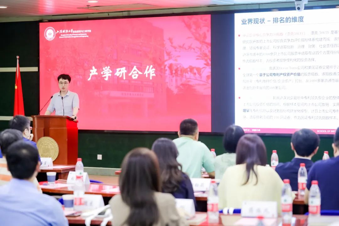 随后,学院助理教授赵晓航作为国金证券合作项目负责人在会上作了题为《信息技术产业制造行业指数研发》的主题分享。项目构建了具有上财特色的指标体系,并建立对专利数据开展可持续收集和清理的机制。赵晓航以技术颠覆性指标为例讲解了词频的整理过程,并展示了专利文本指标结果。与国金证券的产学研合作始于2017年,在完成第一期合作之后, 2023年启动了第二期合作项目,双方本着“优势互补、资源共享、互利共赢”的原则,在指数研发、员工培训、校园招聘以及校园指数大赛、课题研究和论文发表等多个领域开展了深入的合作。