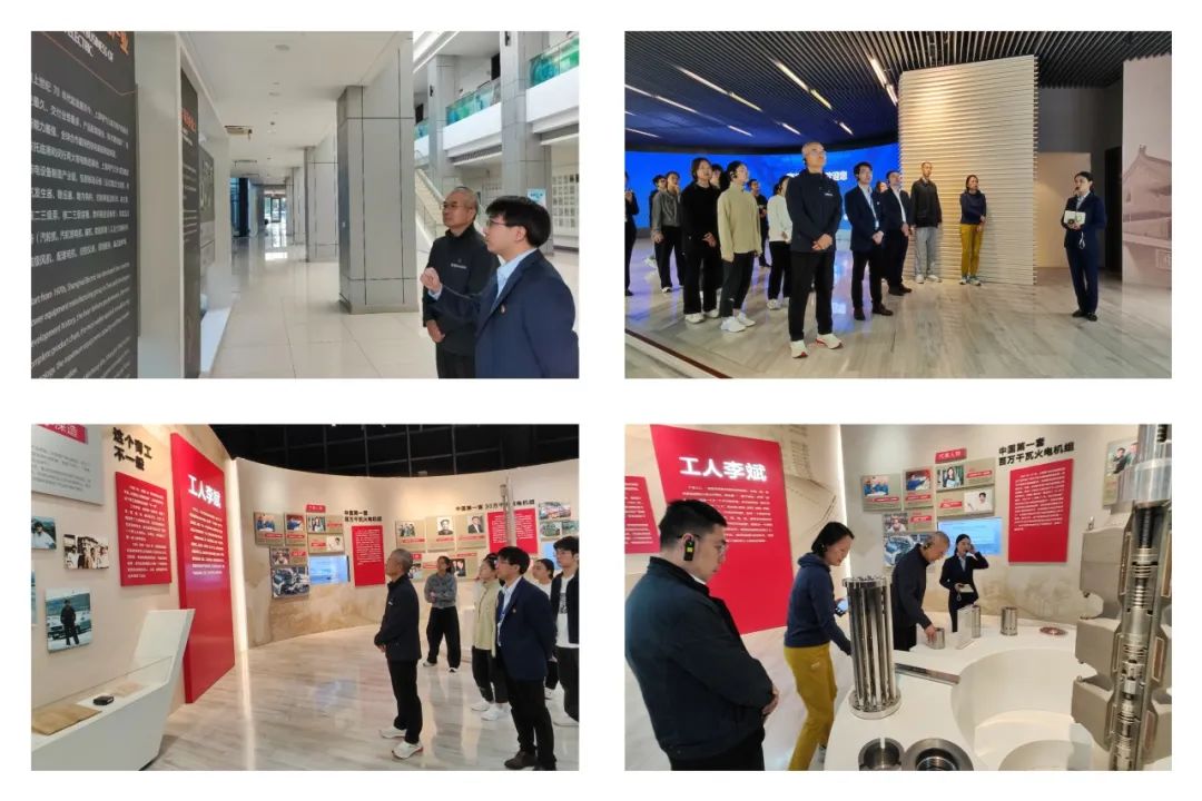 座谈会结束后,马健环校友组织走访一行参观企业。众人首先到达了 “李斌展示厅”,本展厅是一个专门展示以工人李斌为代表的上海电气劳模工匠精神的场所,展示厅以李斌的先进事迹为主线,结合先进装备制造业发展历史,通过多媒体、史料、实物展示等多种形式,全方位呈现了李斌同志以及上海电气劳模工匠的群体形象,大家感受到一代代大国工匠精益求精、勇攀高峰的执着追求和劳模群体敢于担当、甘于奉献的主人翁精神。