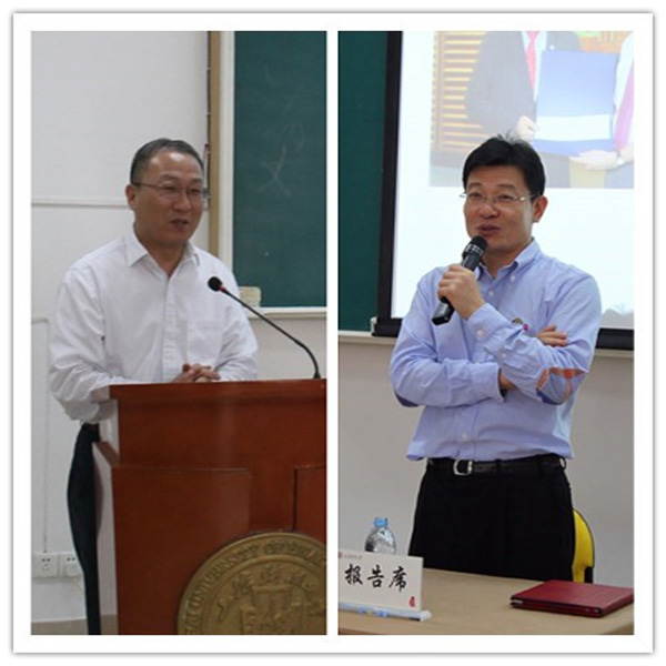 简短会晤之后,黄化锋校董来到行政大楼一楼阶梯教室,走上“春晖大讲堂校董专场报告会”的讲坛,为上财师生带来了题为《我在企业工作期间的一些管理实践和文化认知》的报告。学校合作发展处张彦波副处长主持报告会,方华副校长致热情洋溢的开场致辞。