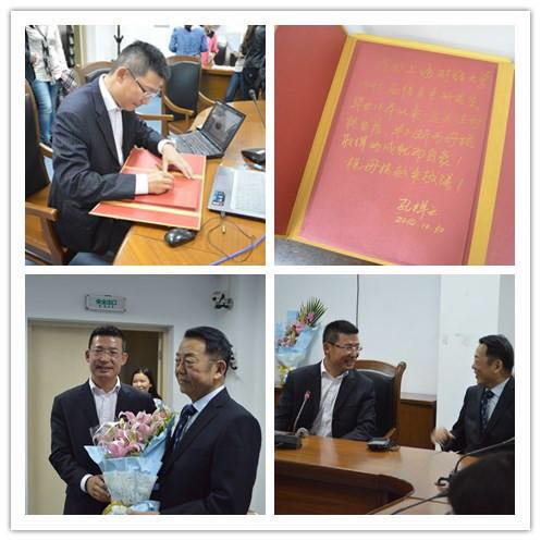 得知孔师兄是临沂人,春晖社特意安排了在财大读书的临沂小伙伴们迎接。浓浓的家乡话,让孔师兄备感亲切,甚至在演讲一开始便饶有兴致地为家乡临沂做了十几分钟的“广告”。同时,为了欢迎孔师兄的到来,春晖社还特别邀请了一位神秘嘉宾——当年孔师兄的恩师,我校信息管理与工程学院王新德老师。当王老师出现在现场,孔师兄三步并两步上前握手迎接,久违的恩师,得意的门生,再次相见,情难以言表。