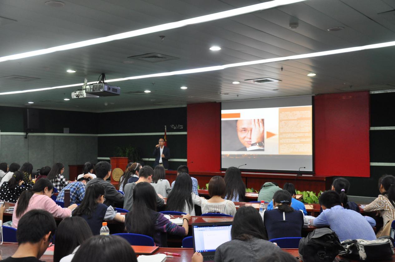 熊雄校友以当下的一个社会现象开始了他的分享会,他认为,自从李克强总理提出“双创”后,整个社会过于浮躁的社会氛围使人们对创业的理解有了偏差,“创业的机会让每个人都觉得可以当老板”,“但是,当老板需要有‘传教士’般的精神”熊雄校友说。