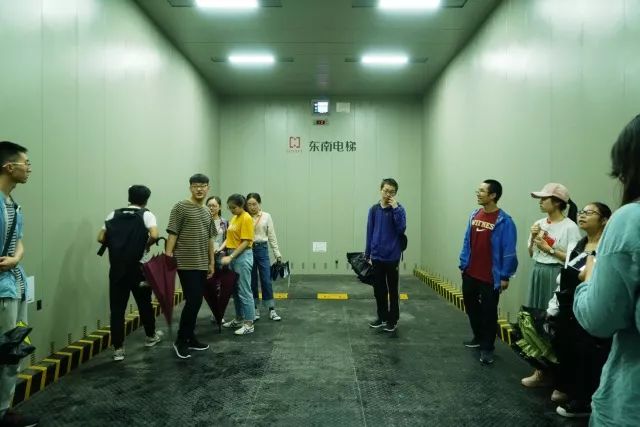 午餐结束后,同学们在工作人员的带领下进入工厂参观。厂内整洁的环境、现代化的机械设备、多种安全性保障模拟实验、精确到百分比的流程计划表等,都让大家感受到了东南电梯“精益求精、追求卓越”的企业精神。