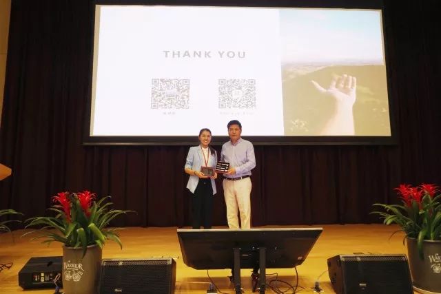 讲座的最后,为了表达对秦校友的感谢,校合作发展处马卓媛老师代表校友会向他赠送了上财校徽礼盒,并共同打开东南电梯的特色巨大电梯“合作之门”。