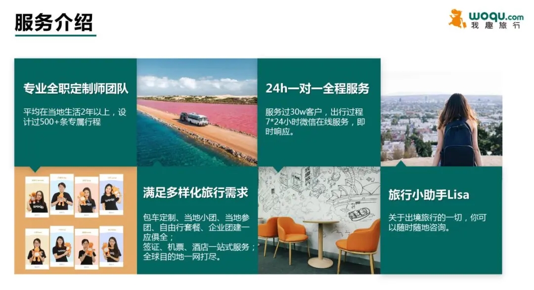 我趣旅行于2013年底由上海财大校友黄志文先生创立,公司专注于出境自由行;先后获得晨兴资本、腾讯投资、元钛资本的投资;5年专注美加、欧非中东、澳新等全球中高端定制旅行,只做有品质的旅行。