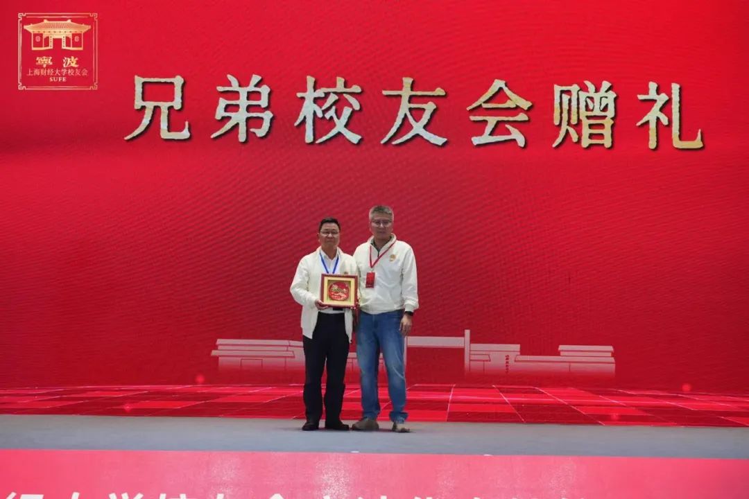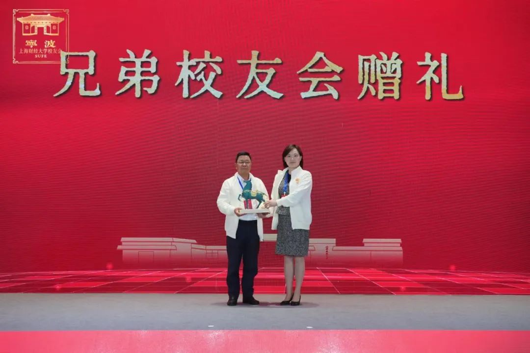 校友会聚首,共话桑梓情。在宁波代表处换届这个特别重要的日子里,兄弟校友会也是给我们带来了意义非凡的纪念品,会长胡元虎上台接受赠礼,厦门代表处和会计学院校友会上台赠礼。