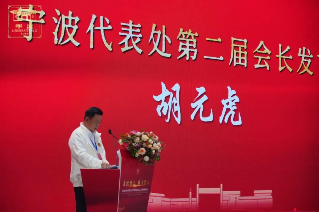在全场的热烈掌声中,宁波代表处第二届会员代表大会新当选会长胡元虎上台发言,展望未来,在胡会长的带领下以及各位校友的共同努力下,宁波代表处也会发展成为更团结、更活跃、更有影响力的校友会组织!