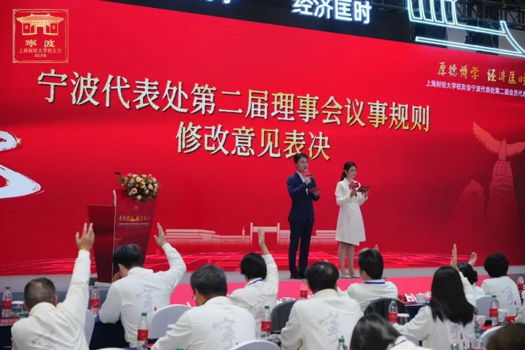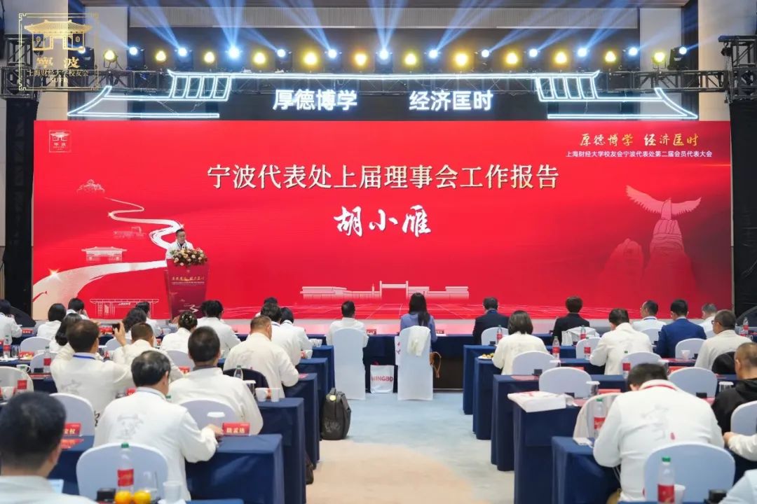 2024年11月2日,上海财经大学校友会宁波代表处第二届会员代表大会在宁波奉化紫璋台会议中心和乐厅隆重举行。