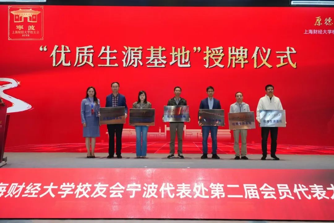 宁波教育发展源远流长,唐建州学,宋设县学,素有“文教之邦”的美誉。改革开放以来,宁波教育全面贯彻党的教育方针,积极落实立德树人的根本任务,实现了跨越式发展,每年向全国各地输送大量人才,同时也是我校重要的生源基地。下面进行“优质生源基地授牌仪式”。优秀生源基地镇海中学、效实中学、鄞州中学、慈溪中学、余姚中学、奉化中学、宁海中学上台接受牌匾,上海财经大学副校长刘莉亚上台授予牌匾。