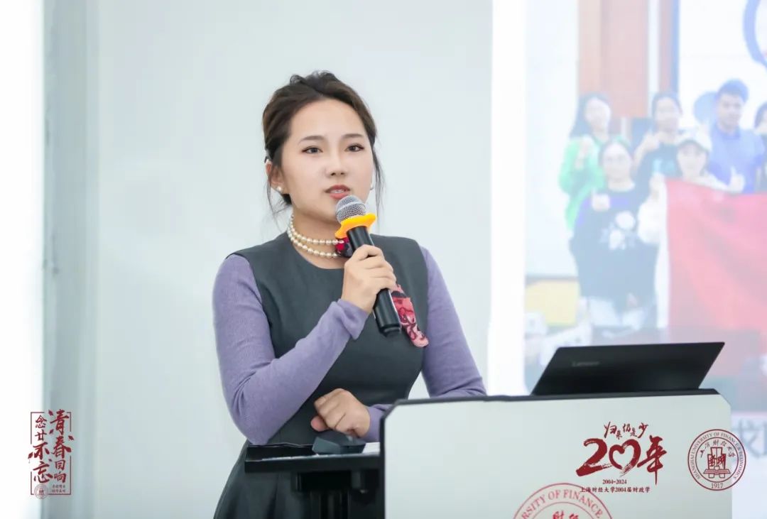 学院校友会秘书魏宁勖介绍学院校友工作情况。她从组织架构、工作理念、系列活动等维度多方面、深层次地展示了学院校友会优质的工作成果和发展水平。她说到,学院始终贯彻学校校友总会“服务校友发展,服务母校发展”的工作理念,围绕学院校友会“依托校友、服务校友,尊重校友、发展校友”的16字工作方针紧密连接校友,在教育教学、人才培养、校友协同育人等方面都做出了不菲成绩。