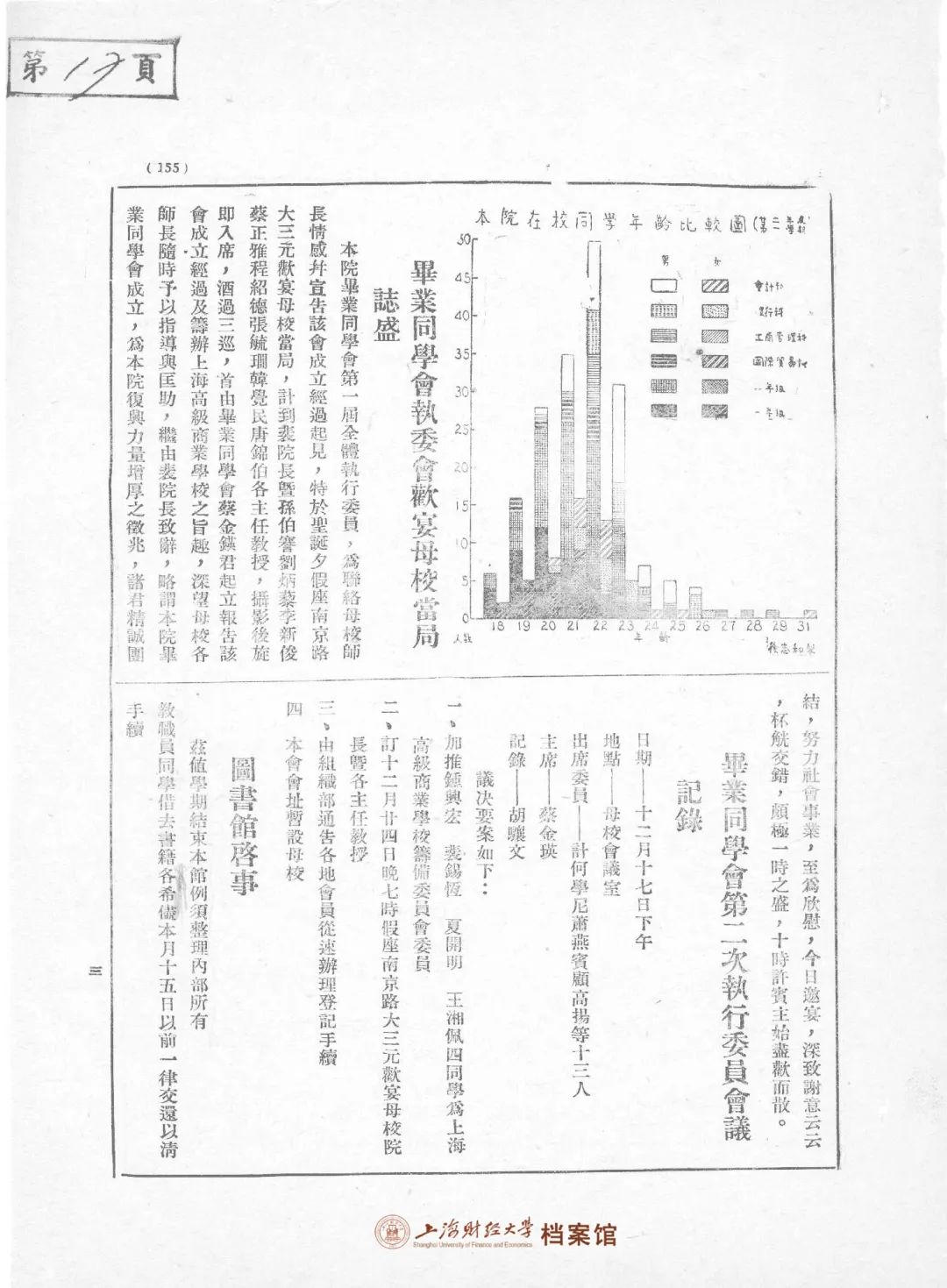 ▲ 1934年1月,《国立上海商学院院务半月刊》第八期,刊载了《毕业同学会执委会委员会议》、《毕业同学会执委会欢宴母校当局志盛》的消息