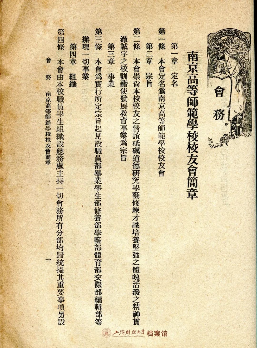▲ 1918年9月,《南京高等师范学校校友会杂志》第一期刊载的校友会简章(部分)