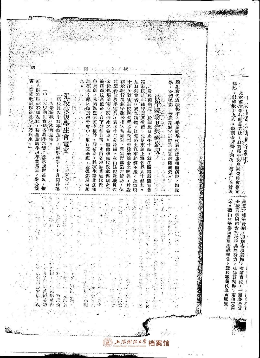 ▲ 1930年12月,《南高、东大、中大毕业同学总会会刊》第一期,刊载了《商学院奠基礼盛况》的消息