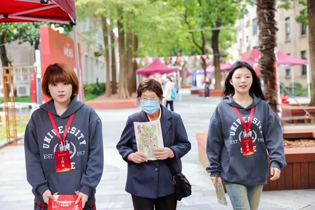 学生志愿者为校友指引校园路线,