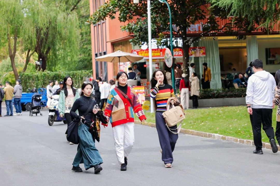 校友们在校园拍照打卡,