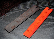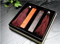 木制书签——财大校训木质书签由实木制作而成,长14.9cm宽2.7cm,共两种样式。红色书签为花梨木,雕刻“厚德博学”字样;黑色书签为科特迪瓦黑檀,雕刻“经济匡时”字样。书签上装饰由台湾冰丝制作而成的流苏,富有古朴韵味和典雅气息。价格:¥100.00