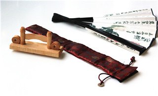 折扇——折扇套装由扇箍、扇袋、扇盒、扇架组成,折扇由财大图书馆李笑野馆长亲笔绘制,正面为“藏往知来”、馆长寄语、财大LOGO,反面为馆长绘制的水墨画。折扇制作精美,扇骨选材为黑檀木,扇纸选用半生半熟宣纸,采用骨法水墨印刷。扇盒尺寸:37cm*9cm*5cm,扇袋尺寸:39cm*4cm,扇架尺寸:14cm*4cm*7cm,价格:¥350.00