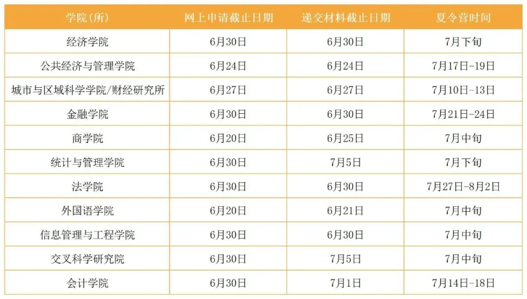 各学院申请截至时间不同。请仔细阅读各学院夏令营通知,并参考上表中夏令营的报名和举办时间。