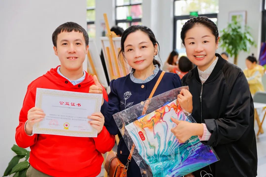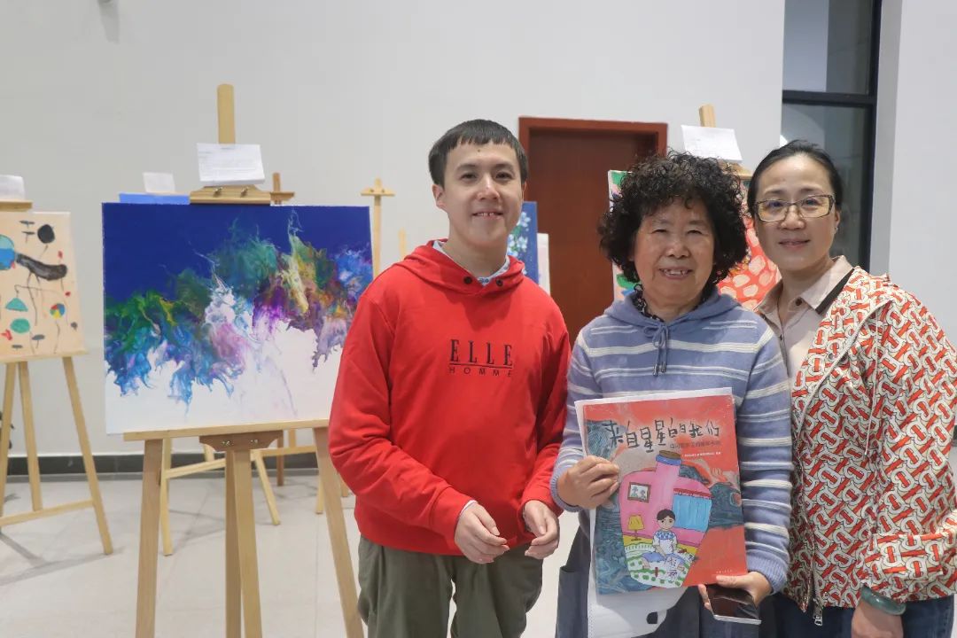 本次公益画展共展出由自闭症儿童(星宝)亲自手绘画的油画作品18幅及印有星宝绘画作品的环保袋、星宝亲手制作的钥匙圈等手工产品。在公益画展活动现场展示的星宝们的18幅油画书法作品中有10幅油画被校友们热情公益捐助购买。金融学院副院长曹啸老师不在现场特意线上公益捐助购买油画一幅以表示对活动的大力支持和对自闭症儿童及家庭的关爱之情。金融学院校友会常务副会长赵晓菊老师不仅现场公益捐助购买了画作和两个印有星宝绘画作品的环保袋,还精心为当天参加活动的每一位星宝准备了她个人表达关爱的红包,亲自送到每一位星宝手中,表达了对星宝绘画作品的欣赏和喜爱。赵老师还与星宝妈妈们悉心交流,表达了她对星宝及星宝家庭浓浓的关爱之情。幸福人生分委会主任盛明辉副会长公益捐助购买了星宝画作一幅并与星宝家庭积极交流星宝康复训练方面的情况。盛明辉副会长还?请了从哈佛大学毕业的医学专家陈总为星宝的家长讲授了针对自闭症儿童的不同兴趣爱好,可以采取的不同治疗方式。“铂金合唱团”分委会主任漏涛老师和副主任兼铂金合唱团执行团长张泓副秘书长也各自公益捐助购买星宝的画作并与星宝们亲密合影。本次公益画展活动还得到了上财校友总会以及兄弟校友会的高度关注和热情支持。校友总会苗招弟老师和王爱丽老师也亲临活动现场,并热情公益捐助购买画作表达了对自闭症儿童的关爱之情。安徽代表处秘书长李雪琴校友、江苏校友会副会长兼秘书长庞芳校友都亲自到现场观看星宝们的画展,并公益捐助购买了画作,表达了满满的公益爱心。还有很多校友参加了本次活动,表达了对自闭症儿童的关心关爱。