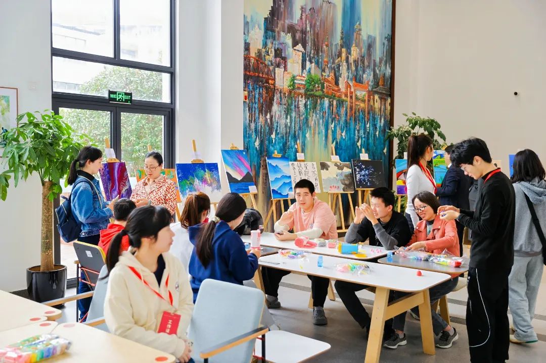 下午, 金融学院首届关爱自闭症儿童校友公益画展活动在教师教学发展中心举办,获得圆满成功。本次校友公益画展活动得到了金融学院领导、老师和学院校友会会长、副会长以及校友会 “幸福人生”分委会的大力支持。金融学院校友办公室联合金融学院学生团委的志愿者同学们一起做公益。