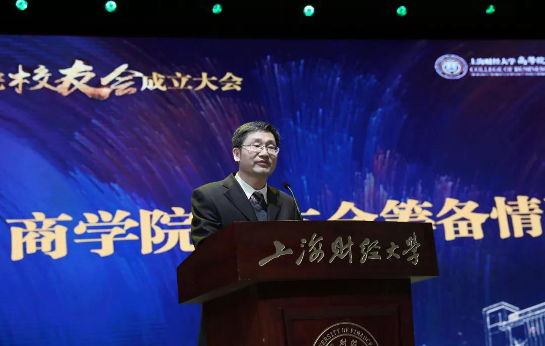 上海财经大学商学院党委副书记刘兵勇向大会汇报商学院校友会的筹备情况