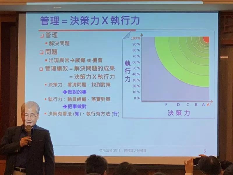 接下来,台湾前行政院院长、台湾国立交通大学管理学院院长毛治国先生发表了题为《与领导人谈管理》的专题演说。根据多年的从政经验,他认为领导人决策时应具备见、识、谋、断四种能力。他结合自身工作经历,讲述了在中华电信、台南登革热、苏花改和八仙尘爆等个案中的决断情境和对细节的处理,以此深入浅出的阐述了领导者所需要具备的特质和能力。他所讲解的一些案例,已被哈佛大学商学院收录于企业转型再造系列素材库,成为全球管理的经典案例,也令在场校友深受启发。