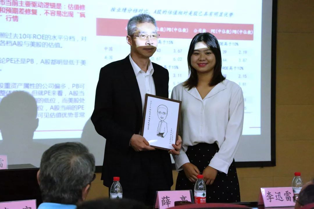 最后,2015届高洁校友代表校友总会为迅雷老师献上一幅素描画像,感谢他对师弟师妹们的帮助和对母校校友工作的大力支持。SUFE校友学堂第一讲在校友们热烈的掌声中圆满结束。