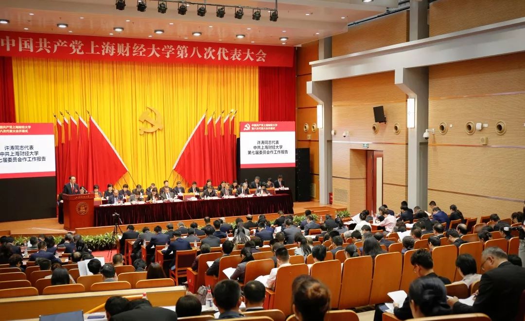 许涛同志代表中共上海财经大学第七届委员会向大会作了题为《扎根中国 匡时创新 全面开启鲜明财经特色世界一流大学建设新征程》的报告。报告分为三个部分:一是第七次党代会以来学校工作回顾;二是新时代学校发展战略目标;三是以党的全面领导引领学校未来五年改革发展。