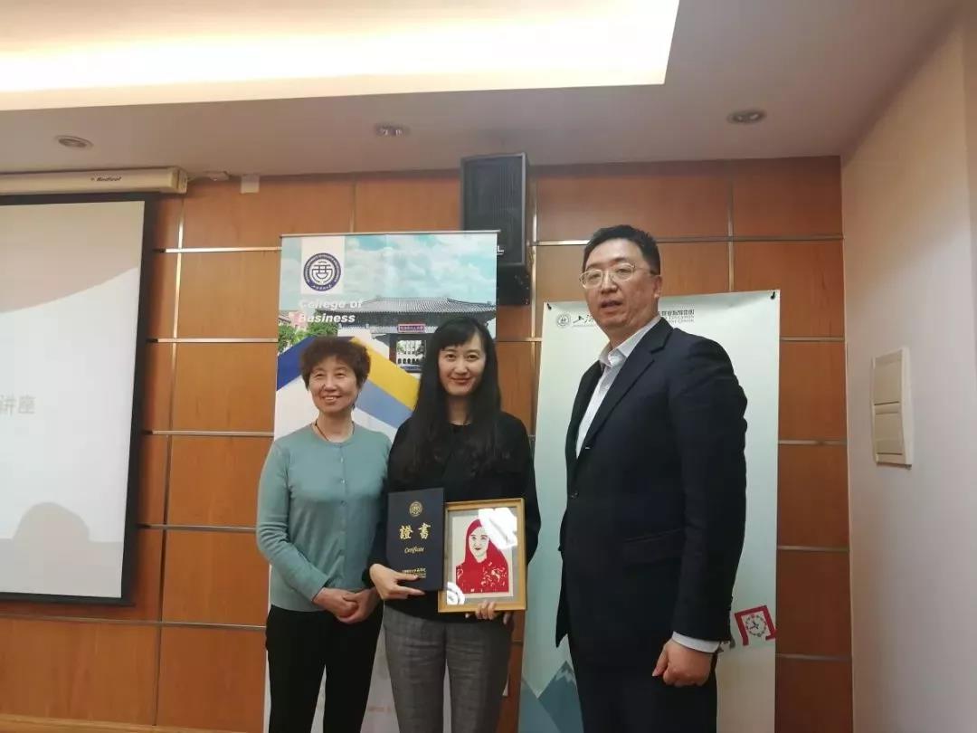活动最后,郑纯选老师和郑峥嵘校友分别代表商学院和商学院校友会给出席本次活动的三位校友颁发证书和纪念品。活动在大家的合影留念中结束。