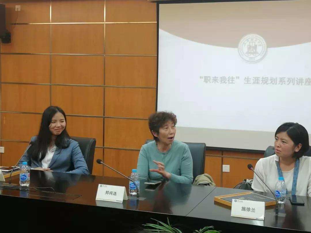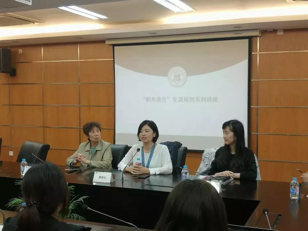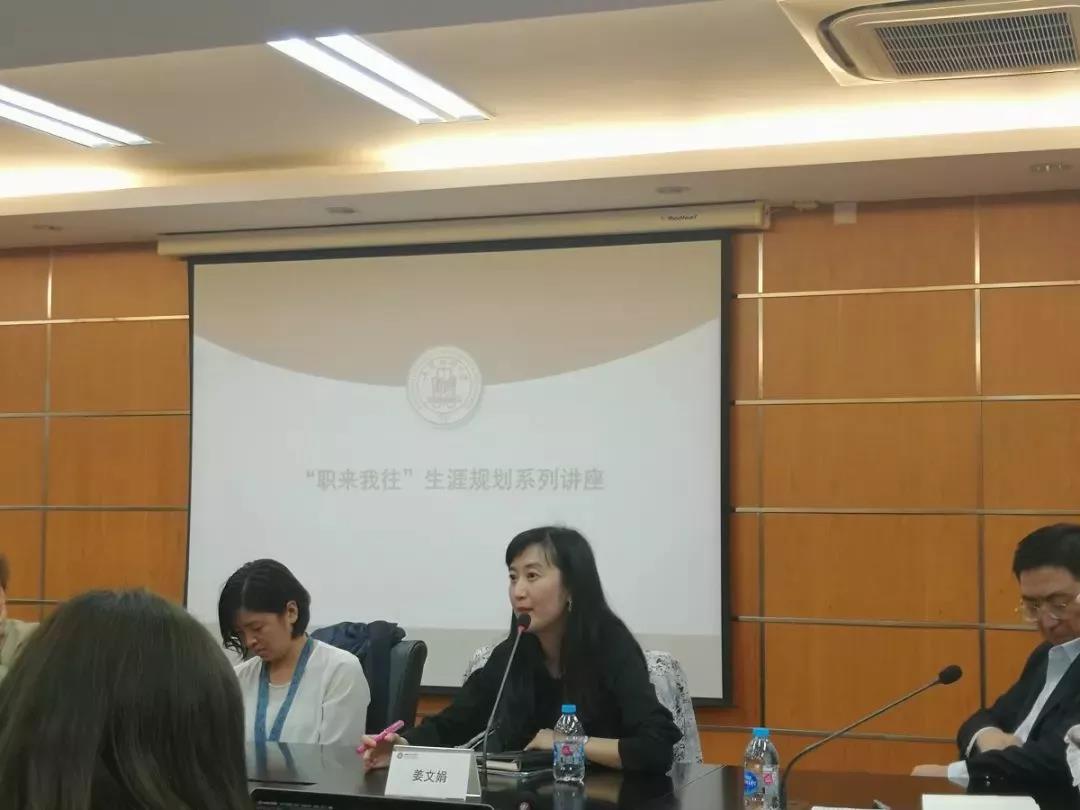 随后,出席本次活动的校友们依次从各自的行业特点、职业发展经历、个人发展规划等与学生进行交流。科思创人力资源部施徐兰与在场学生分享了咨询、快消、化工的最新行业信息,并通过实际案例讲解,从人力资源的角度帮助同学们进行职业发展路径的规划。