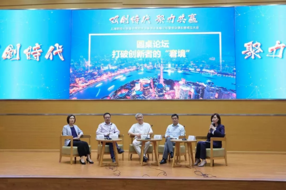 之后,“打破创新者的‘困境’”圆桌论坛举行。上海新金融研究院副院长刘晓春,斯坦福大学访问学者、弘翌投资董事长高凌云,上海明品医学数据科技有限公司创始人、董事长兼CEO姚娟娟,上海财经大学商学院常务副院长魏航,四位嘉宾共同探讨创业者创业面临的一些问题以及提供创业建议。