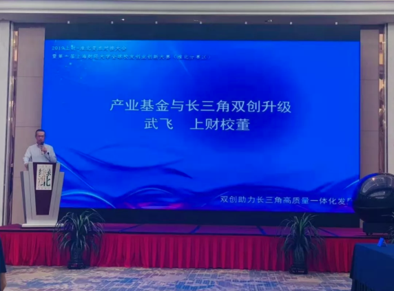 上海财经大学校董、上海道得投资董事长武飞带来主题演讲《产业基金与长三角双创升级》。
