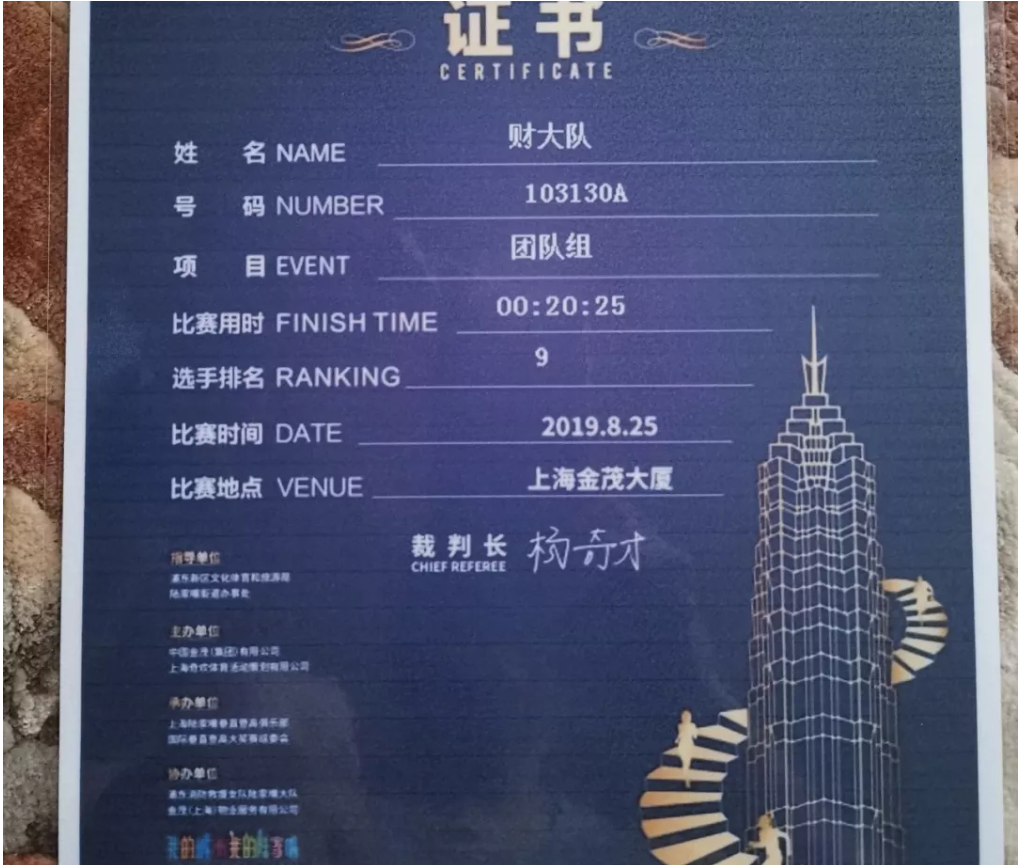 经过大家努力,我财荣获团体第九名